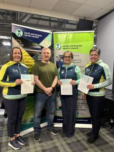 Annemarie with Kayleigh Olsen Frank with Fair City AFC Hugh with Perth Pickleball Club David with Perth Railway Boxing Club
