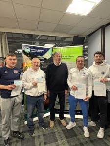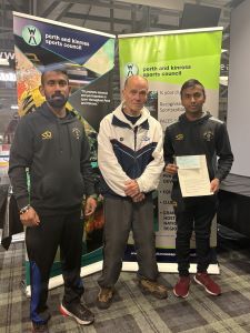 Cllr Anderson with Douglas Beckett David with Samual McConnachie John with Oisin Lindsay-Dorward David with Breadalbane Cricket Club